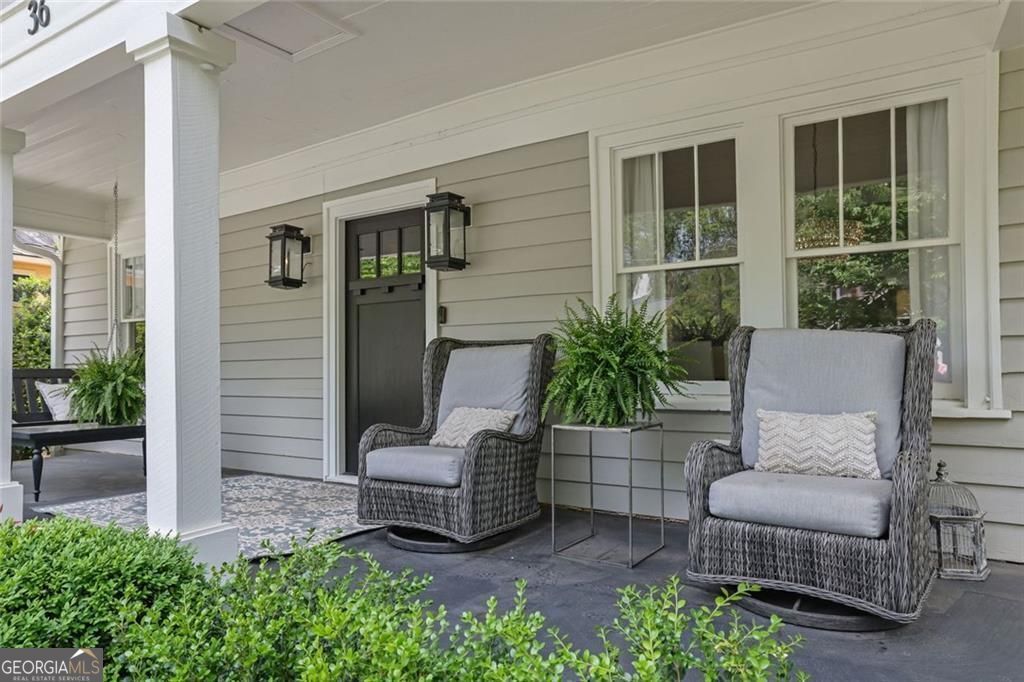 Imagine living in an idyllic village setting, where tree-lined streets, cafes, and acclaimed restaurants are just steps from your front door. Or hop in your golf cart and explore Historic Roswell-alive with charm, energy, and year-round events. 36 Goulding Place is a rare opportunity in the heart of it all. A charming cottage-style entry and welcoming Southern front porch have been thoughtfully restored, opening to a newly constructed custom home that seamlessly blends historic character with modern design. At the front of the home, a private office or guest suite with a full bath and a spacious dining room reflect the timeless appeal so cherished in Roswell. Beyond, the home opens into entirely new, carefully curated living spaces designed for both everyday comfort and effortless entertaining. The main level is defined by vaulted ceilings with wood planking and exposed beams, bringing warmth and architectural presence to the space. A true extension of the home, the elegant veranda with sliding glass doors and a built-in grill creates a year-round setting for outdoor dining and gathering. The kitchen, crafted by Keystone Millworks, is both striking and highly functional, featuring a dramatic porcelain backsplash, Wolf and Sub-Zero appliances, and a generous island ideal for hosting. A beautifully appointed scullery kitchen offers additional prep space, custom cabinetry, and exceptional storage-an essential feature for those who love to entertain. Natural light fills the open floorplan, flowing into the vaulted family room with a linear fireplace and walls of windows. Sliding glass doors lead to a screened porch overlooking the private, landscaped backyard. Privately situated on the main level, the primary suite offers a true retreat with a vestibule entry, vaulted ceiling, dual marble vanity, a frameless walk-in shower, and two custom walk-in closets. A light-filled staircase leads to the terrace level featuring elevated ceilings, expansive windows, and detailed millwork. This level includes two ensuite bedrooms, a spacious recreation room, and a sitting area that opens to a covered patio. Outdoor space is a true differentiator. The manicured yard provides room to play, entertain, or reimagine-whether as a garden, gathering space, or even a future putting green. An oversized two-car garage offers additional storage. A custom home of this caliber, just moments from Canton Street, with this level of craftsmanship, thoughtful design, and usable outdoor space, is extraordinary.